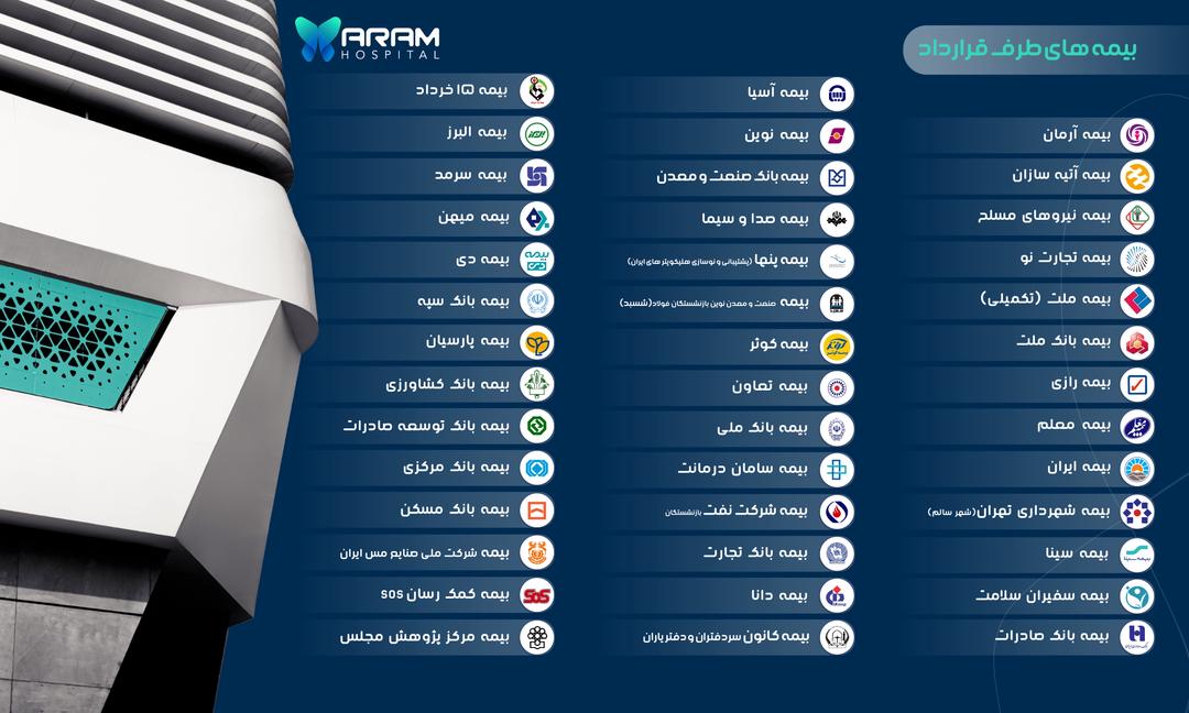 این مرکز طرف قرارداد با تمام بیمه‌های پایه (خدمات درمـــانی، تامین اجتــماعی و نیـــروهای مسلح)، بانک‌ها و تکمیلی‌های متعدد می باشد