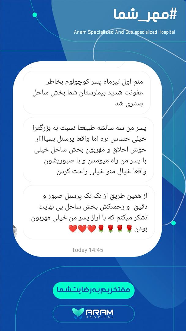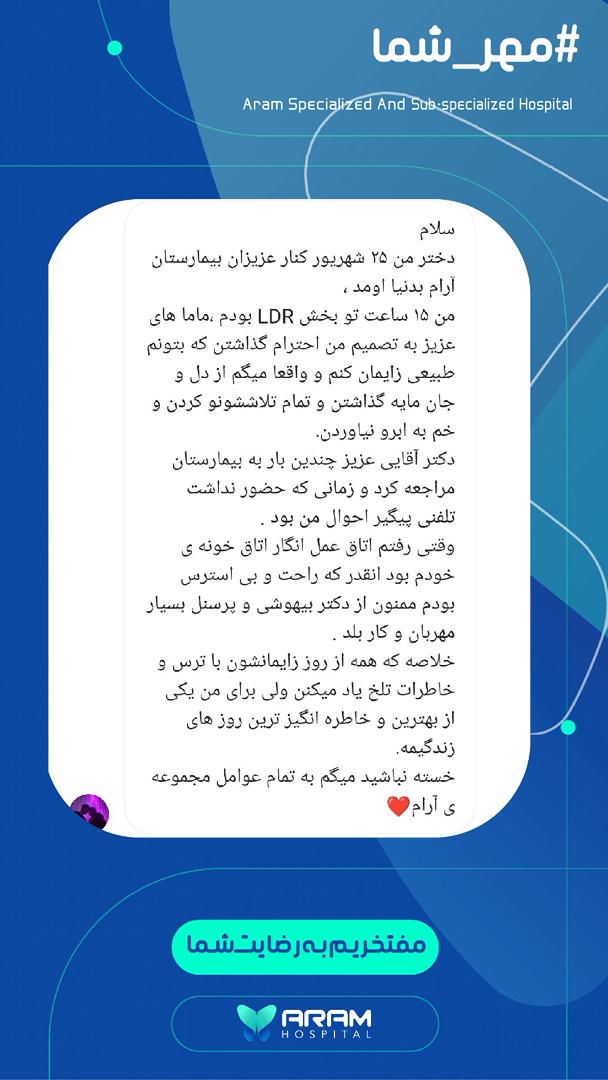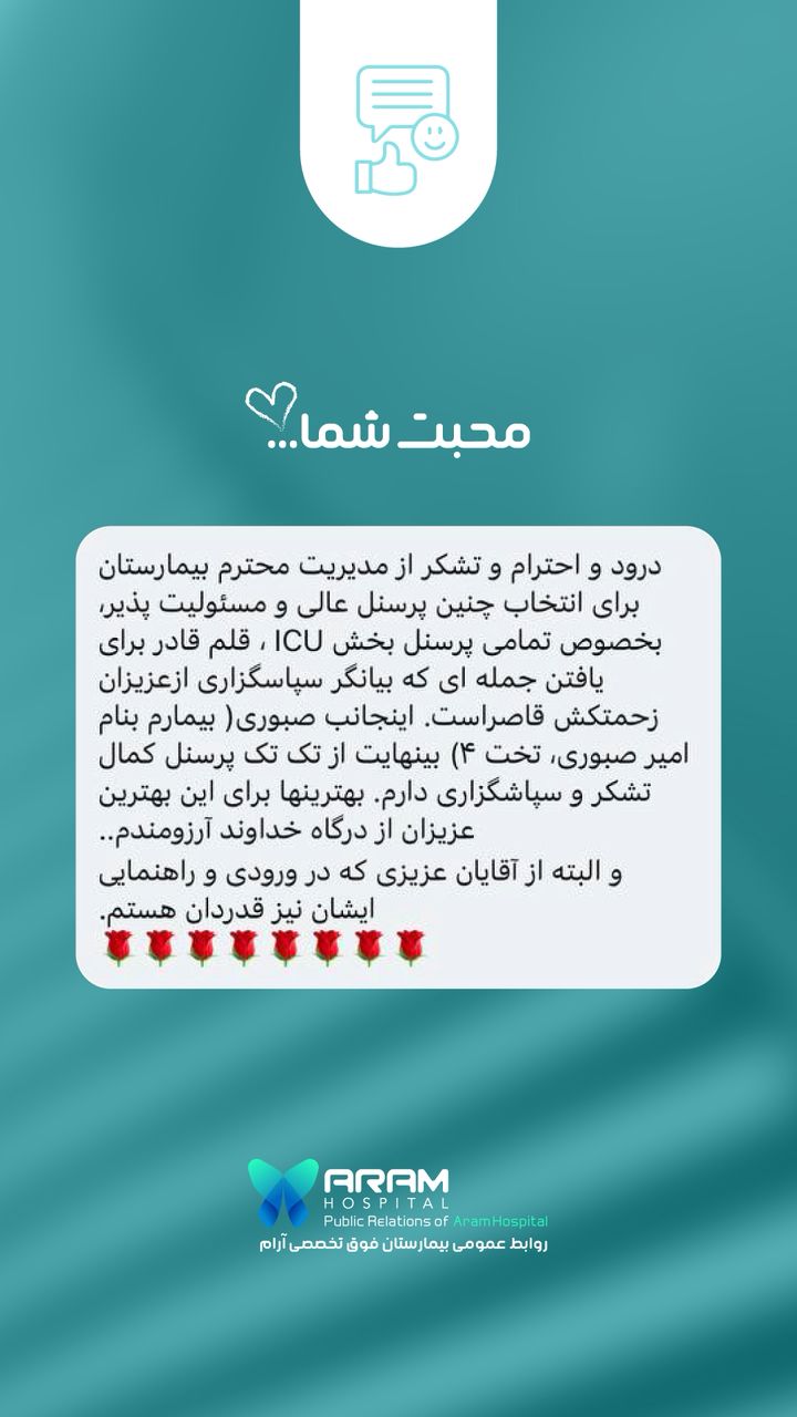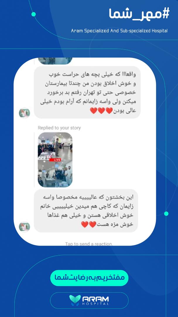 بيمارستان تخصصي و فوق تخصصى آرام باهدف ارائه خدمات پزشكى و درمانى در بالاترين سطح كيفيت